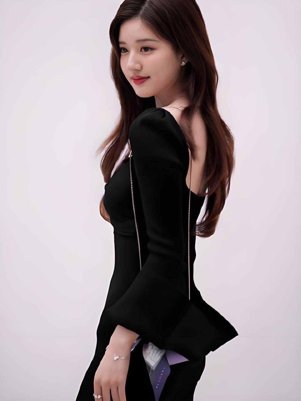 有意思的是,这次争议里最戳人的点,是网友翻出她三年前的采访。当时记者问她会不会为上镜刻意减肥,她边啃鸡腿边说:“我妈说女生有点肉才好看,干嘛要饿肚子?”如今看来这话简直预言家——她用实际行动证明,丰满从来不是缺点。就像这次的黑色吊带裙,明明是基础款,却被她穿出“行走的衣架”既视感,肩带精准卡在肩线最外侧,硬生生把直角肩优势放大十倍,配上清透底妆和蓬松丸子头,整个人像颗裹着黑丝绒的水蜜桃。